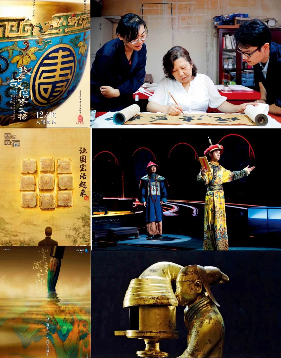 (从上至下) 《我在故宫修文物》 《国家宝藏》 《如果国宝会说话》海报和剧照声优配音。