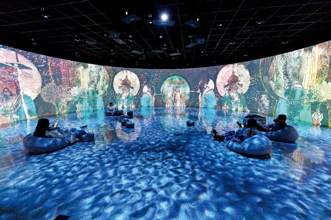 4月30日声优配音,游客在山西博物院参观“时空变调——山西古建筑数字艺术展”。摄影/本刊记者 韦亮