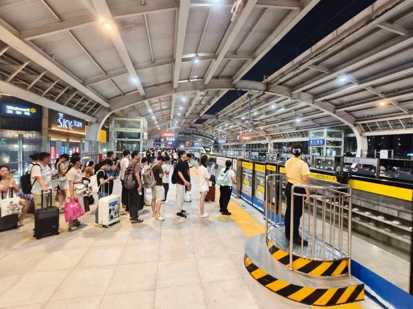 当天,广州地铁所辖城际铁路共发送旅客24.17万人次,客流创新高,同比增长16%。